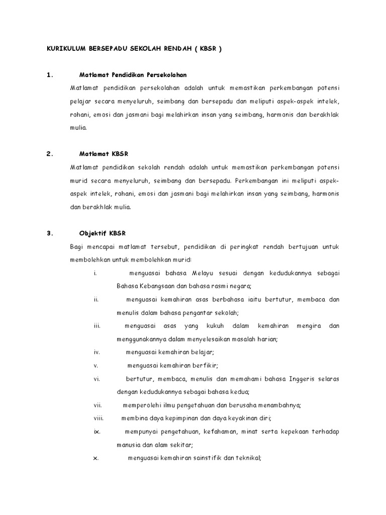 Kurikulum Bersepadu Sekolah Rendah Pdf